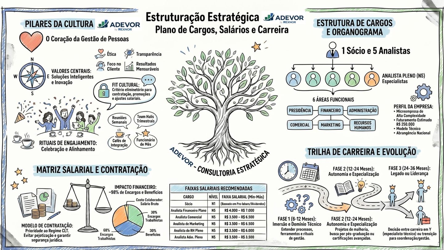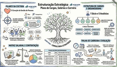 O plano visa estruturar e profissionalizar a gestão de pessoas, garantindo que a organização tenha uma base sólida para o crescimento sustentável. Ele utiliza as diretrizes da ABNT NBR ISO 9001:2015 para alinhar a análise do perfil organizacional, a definição de cargos, a remuneração de mercado e as trilhas de aprendizado